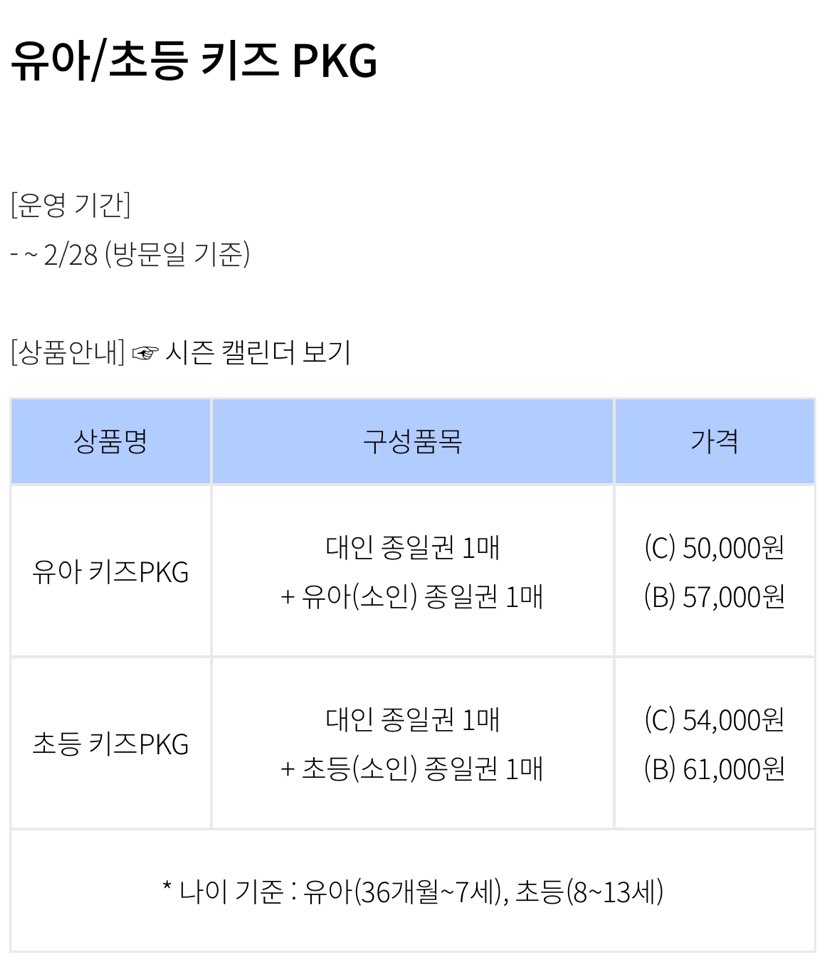 아동 동반 패키지 또는 중학생 이상 학생들을 위한 우대 가격으로 이용하셔도 되고