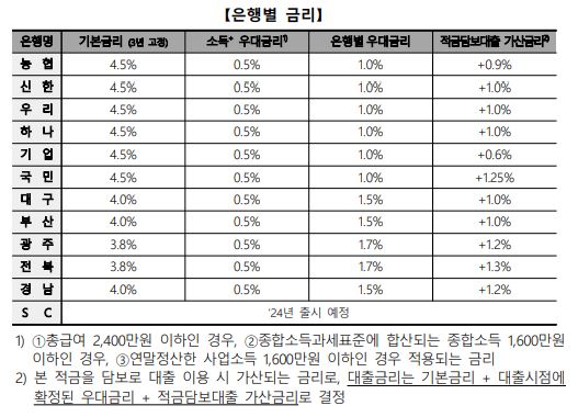 * 금리는 취급기관 자율결정이며 3년 고정금리, 2년 변동금리로 적용된다